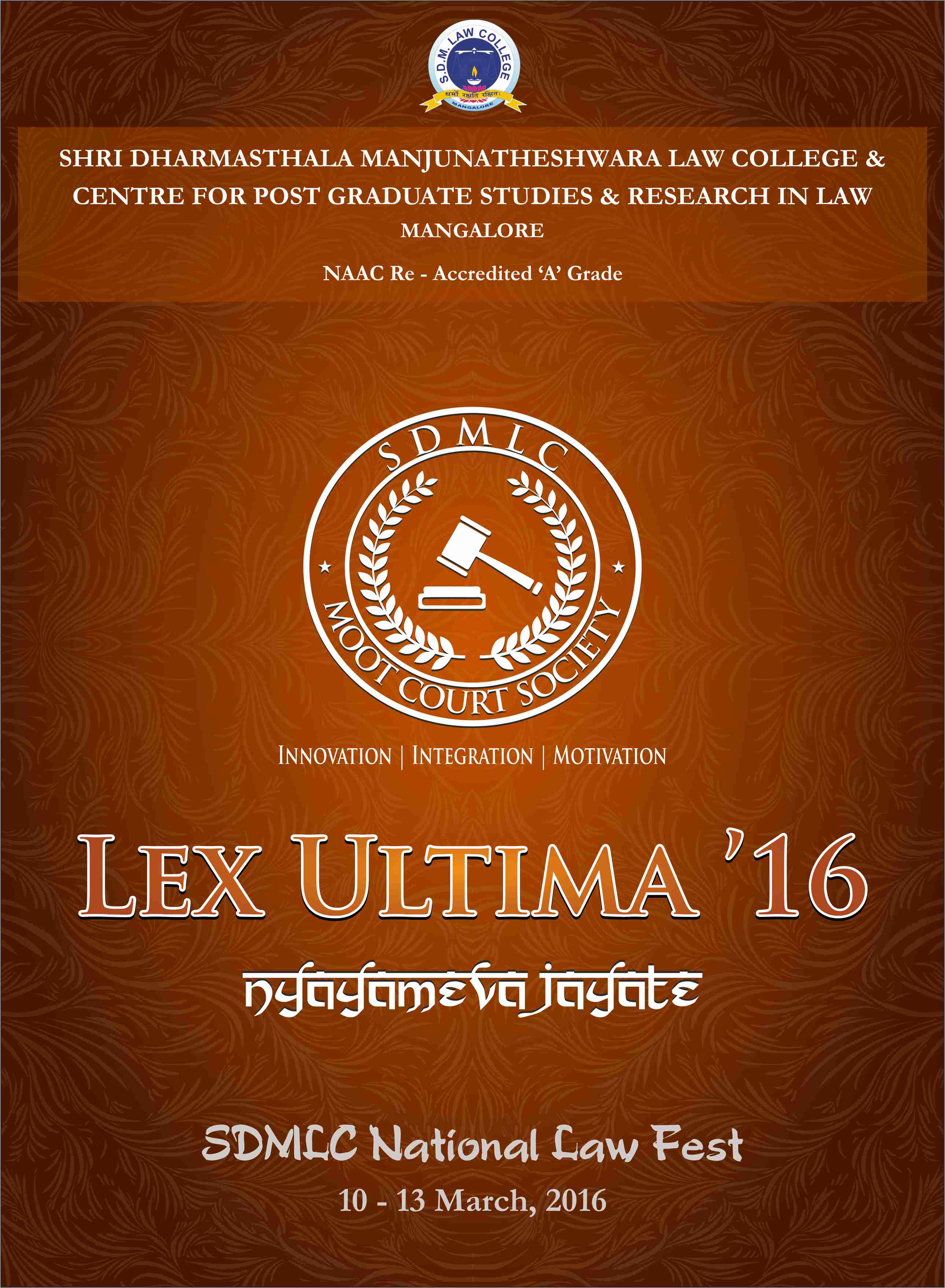 Shri Dharmasthala Manjunatheshwara Law College (SDM), a well known institution in Karnataka is organizing a national level law fest 'Lex Ultima- '16', here at Mangaluru.