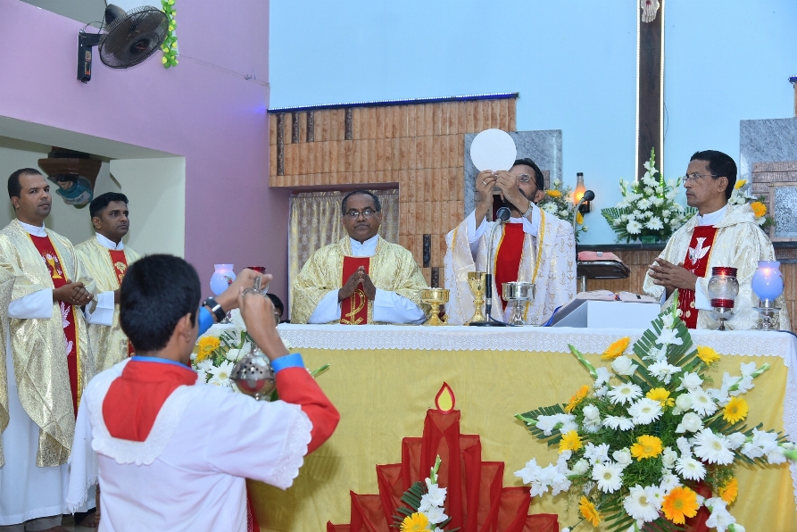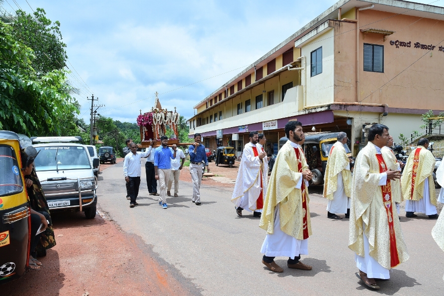 Mangaluru: 13th June is the day of delight for entire parish of Allipade as the Feast of St.Antony was celebrated with pomp and aura. Atmosphere of joy and happiness prevailed everywhere as everyone appeared in the mode of celebration. Music, decorations, lights, band, crackers etc in and around the church were eye catching and made the day explicable. The celebration started with the distribution of candles to all those who contributed towards the feast day.